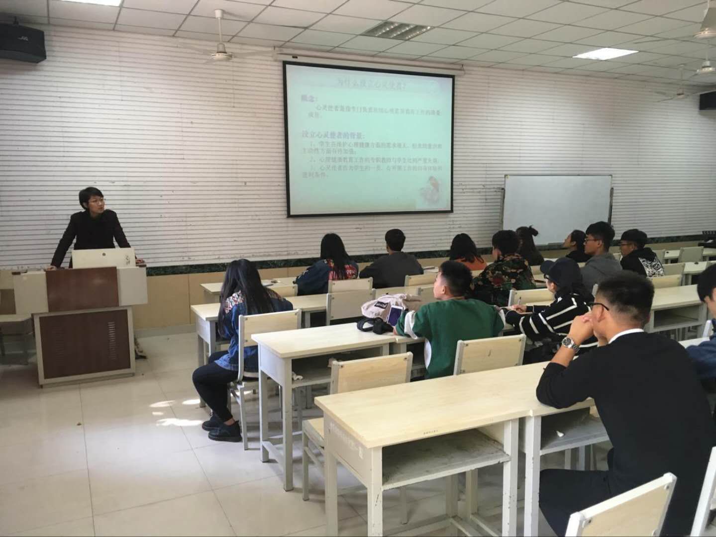 2017年10月24日中午,在ok138cn太阳集团529多媒体教室二举行了第六届心理协会成立大会暨心灵使者培训大会,本次会议由心协主席王慧慧主持,全体心理协会成员及2017级心灵使者参加了活动。