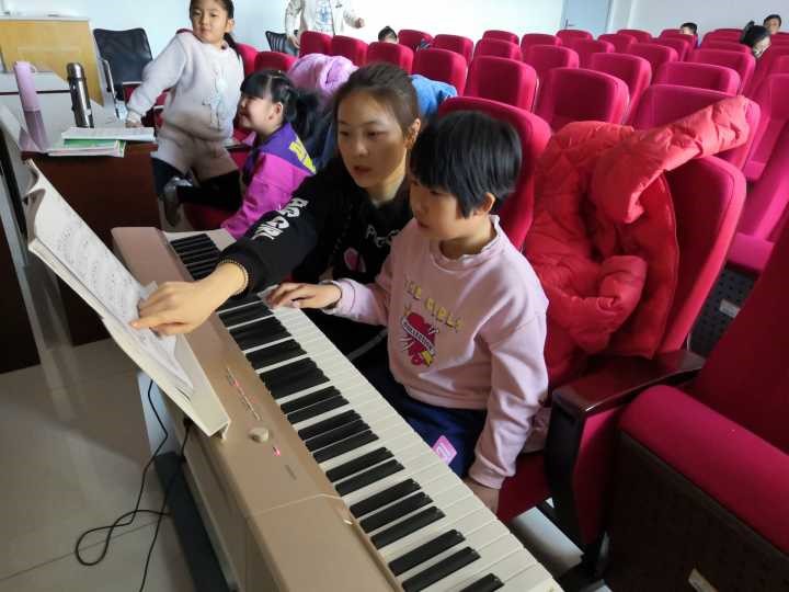 老师们开始上课,学生们马上进入了上课的状态。先给学生们把琴调音,学生们在一旁认真的看着。 前一小时教学生们弹奏了《小星星》,老师们先给演示又手把手教,他们不懂的还自己问,一遍又一遍的学着。终于,经过不懈努力,孩子们已经能够很熟练的弹奏这首曲子,一个小时的课程结束同学们休息。