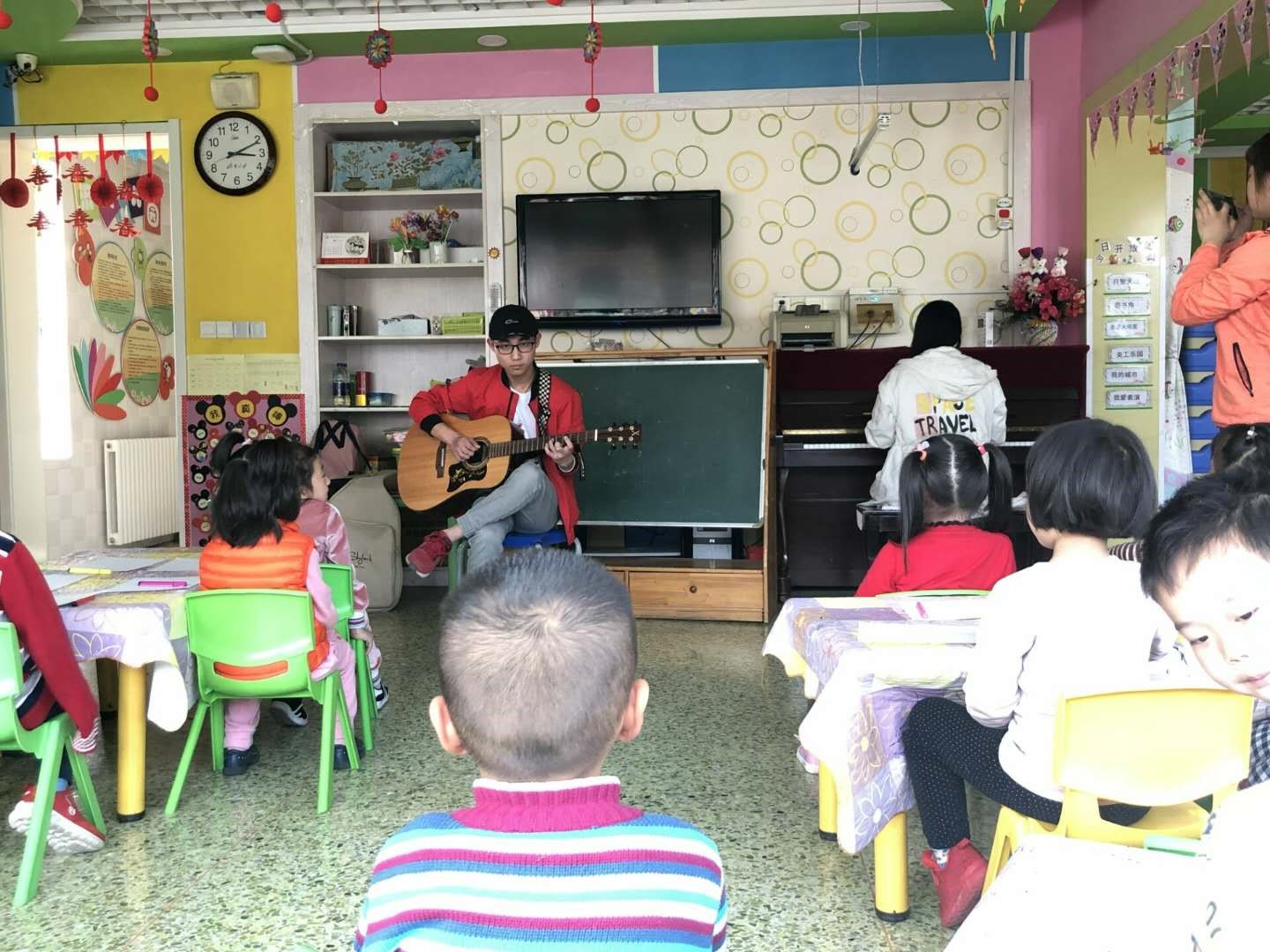 下午2:00,志愿者们到达幼儿园,受到了老师和小朋友们的热烈欢迎。首先,在王舒悦的带领下小朋友们认真地学习了关于音乐的基本知识,随后陈岩带着他们分小组进行了简单的唱歌比赛,小朋友们积极参与,现场气氛活跃。