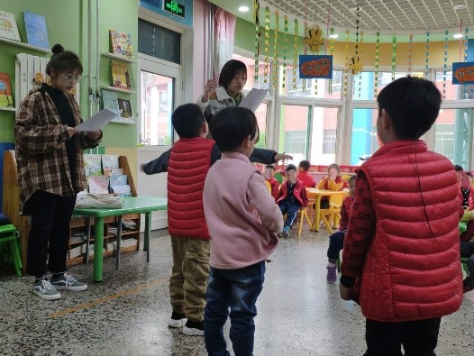下午两点志愿者们到达幼儿园,受到了老师和小朋友们的热烈欢迎。首先自我介绍并简要讲述我们这节课的主要内容:《熊出没》的故事以及学唱熊出没主题曲《我还有点小迷糊》。由老师带领着分别扮演故事中的熊大熊二和光头强,并找了七位小朋友分两组分别扮演熊大、熊二、和光头强,配合志愿者共同表演这个故事,现场气氛活跃!