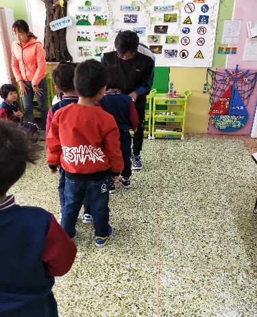 下午两点二十志愿者们到达幼儿园,收到了老师和小朋友们的热烈欢迎。首先志愿者们进行了简单的自我介绍并简要的讲述了我们这节课的主要内容:小白兔的故事以及学唱儿歌《小兔子乖乖》。志愿者们一起来讲述这个故事并负责配合,现场气氛活跃,可见小朋友们非常喜欢志愿者的讲课!