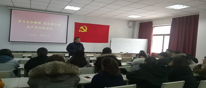 2018年3月20日,ok138cn太阳集团529学生党员在多媒体教室3举行“学习长征精神,坚定跟中国共产党走的信念”学习活动。学习活动由ok138cn太阳集团529党委书记侯启海主讲。