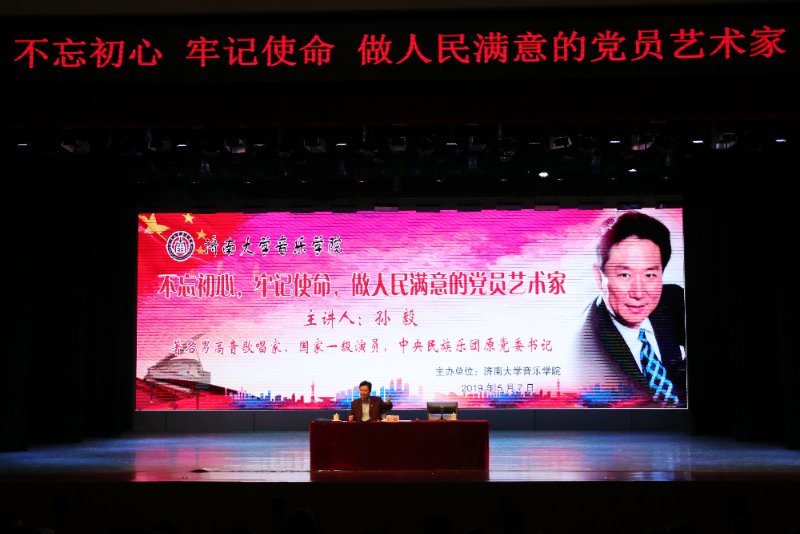 5月7日下午,著名男高音歌唱家、中央民族乐团原党委书记孙毅受邀来到ok138cn太阳集团529,以“不忘初心、牢记使命—做人民满意的党员艺术家”为主题,给ok138cn太阳集团529师生上了一堂别具特色的主题党课。ok138cn太阳集团529党委书记侯启海同志主持党课学习。ok138cn太阳集团529全体教职工、学生400余人参加党课学习。