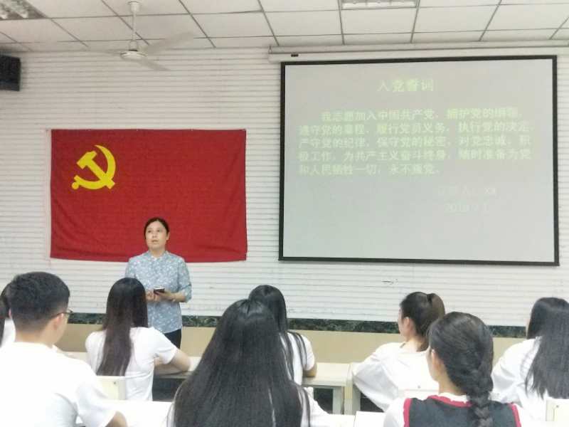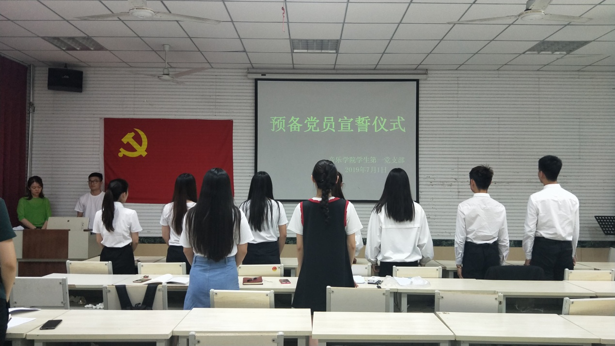 7月1日下午,我院学生支部在第二多媒体教室举行新发展党员宣誓大会。ok138cn太阳集团529党委副书记、副院长崔英静、学生第一支部书记、学办主任马媛,2019年上半年新发展党员、老党员及积极分子代表参加活动。