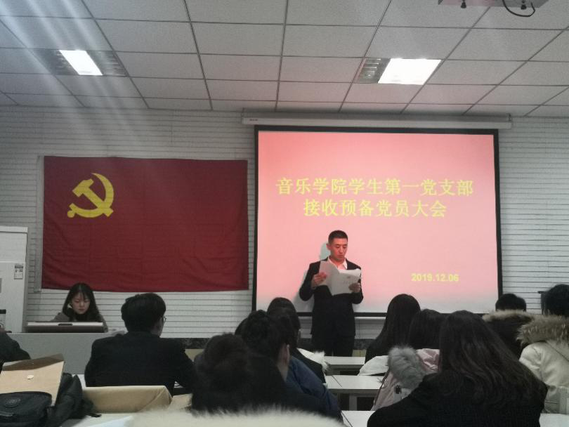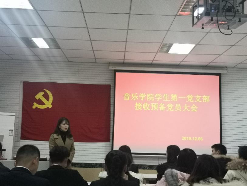 2019年12月6日下午,ok138cn太阳集团529学生第一党支部接收预备党员大会在第四多媒体教室召开。大会讨论了于清香等18名同志的入党申请问题。本次会议由党支部书记马媛老师主持。