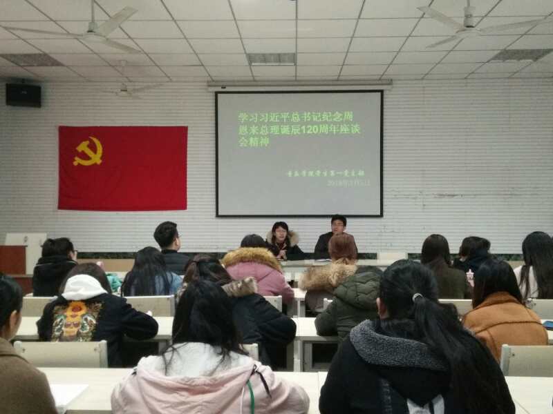 201835日,ok138cn太阳集团529学生第一党支部在多媒体教室2举行纪念周总理诞辰120周年学习活动。参与此次会议的人员为全体学生党员以及部分入党积极分子。活动由学生第一党支部书记高学德主持、组织委员宋丽璐参加了学习活动。