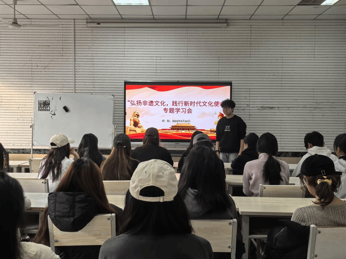 为深入学习贯彻习近平新时代中国特色社会主义思想,筑牢师生对非物质文化遗产保护与传承的使命意识,9月24日,我院召开“弘扬非遗文化,践行新时代文化使命”专题学习会,会议由院学生会团学部部长赵浚屹主持,学院部分团员与青年干部参会。