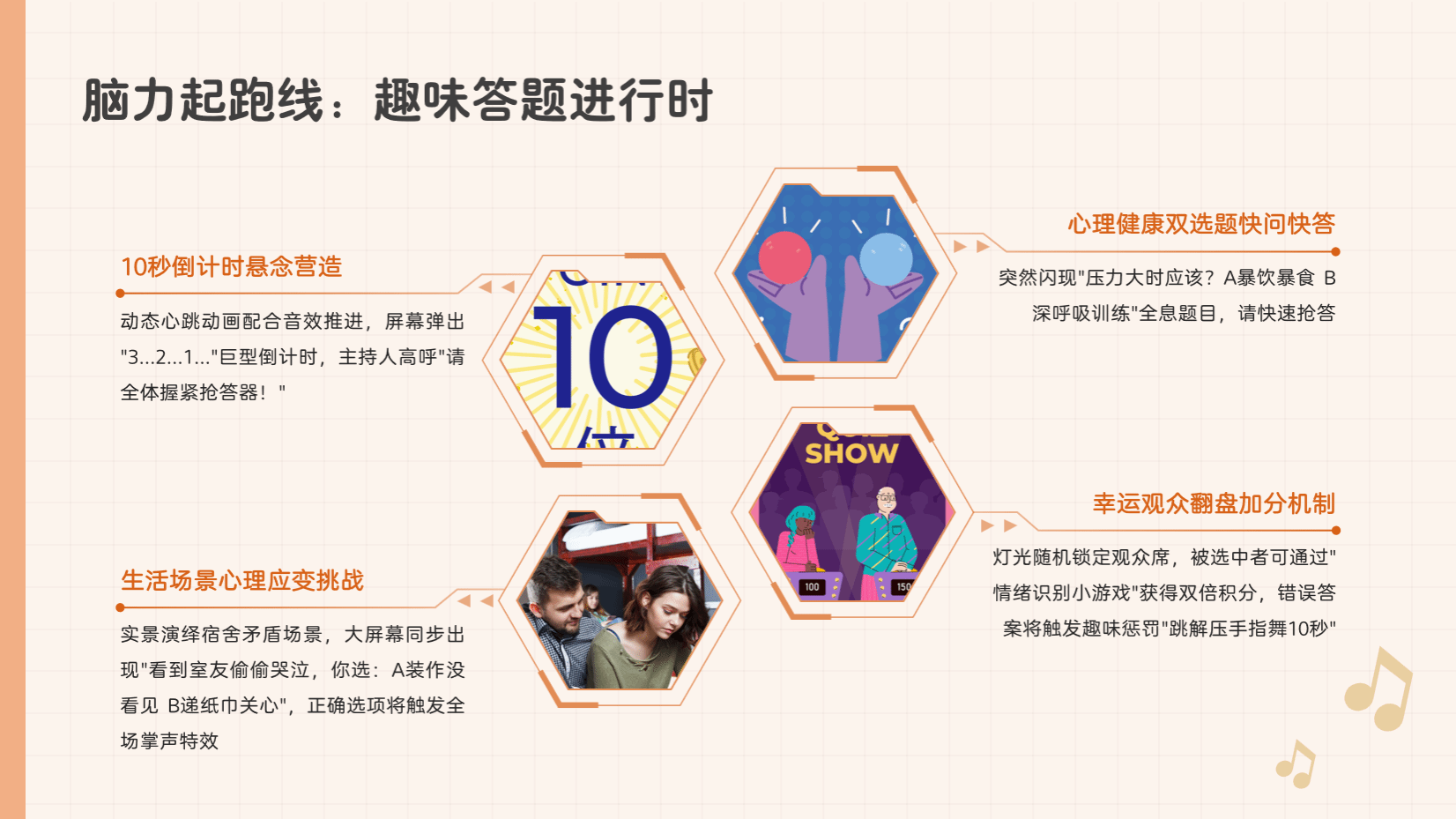 音教2202班以“心理知识挑战赛”拉开序幕。本次比赛摒弃了传统的讲座模式,采用团队竞技的形式,共设有必答题、抢答题与风险题三大环节,内容涉及心理健康常识、情绪管理技巧及危机干预方法等多个领域。在比赛过程中,各参赛团队展现了其深厚的知识储备与协同合作精神,尤其在“风险题”环节,通过情景模拟对心理案例进行分析,成功地将理论知识转化为实际操作能力。团支书晏雷杰在比赛结束后,针对比赛中出现的高频易错知识点进行了深入剖析,现场同学普遍反映,这种互动式的学习方式不仅让他们在竞技中加深了对知识的记忆,更学会了如何在实际中帮助他人。