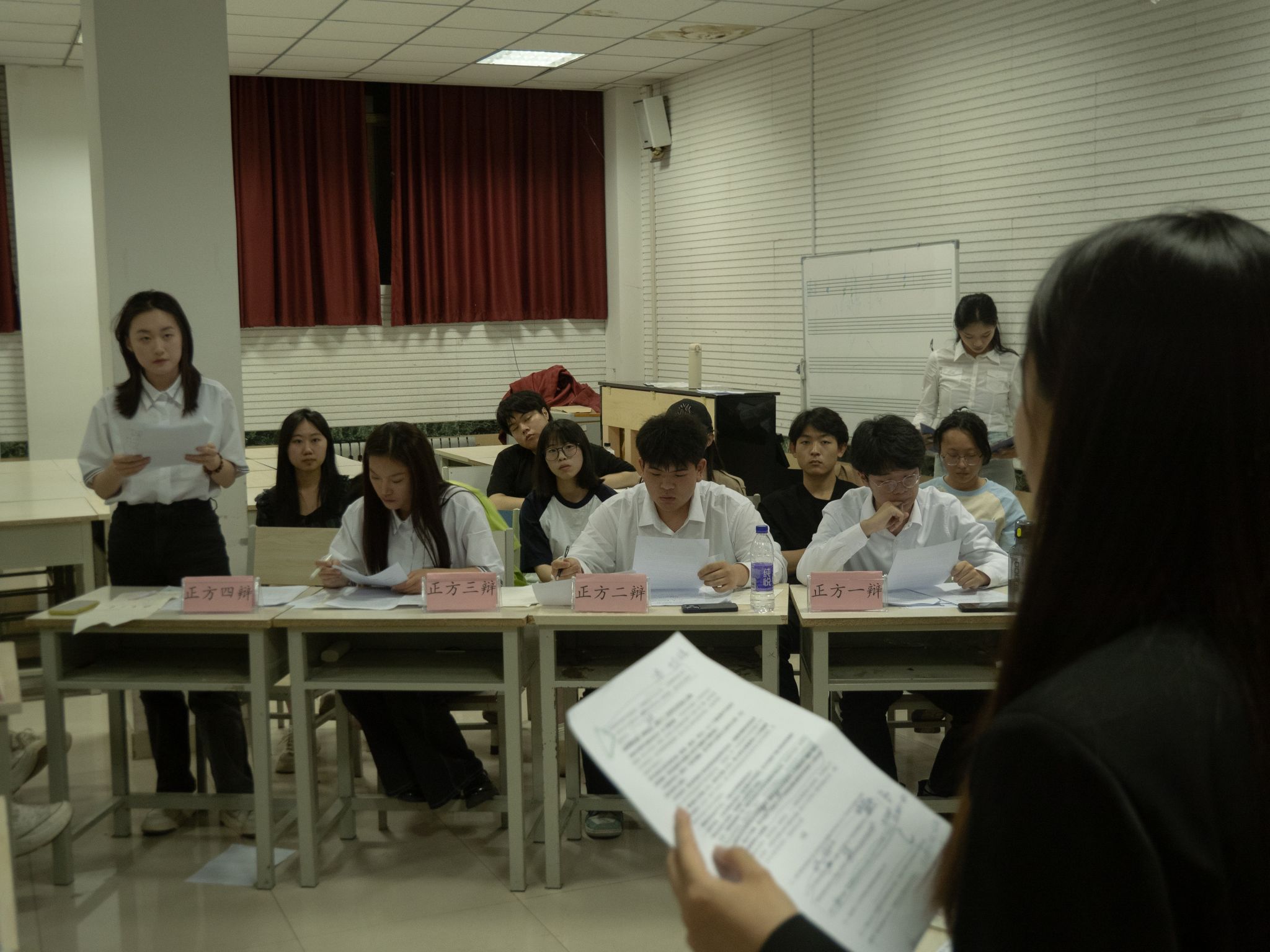 在各项表现中,音乐理论专业2301班代表队尤为引人注目。他们凭借坚实的专业知识基础,缜密的辩论思维,以及卓越的辩论才能,赢得了评委与观众的高度认可。特别是在探讨“人际关系中坦率能否化解矛盾”的议题时,他们展现了深入的剖析能力和清晰的论述逻辑,表现出色。此外,本次竞赛亦有多处令人瞩目的精彩场面。在自由辩论环节中,参赛者思维敏捷,言辞犀利,深入探讨辩论主题,展现了他们的才华。在总结陈述阶段,他们更是慷慨激昂,以饱满的情感充分阐述个人观点,使辩论之魅力得以充分展现。这些精彩瞬间不仅令观众领略到辩论的独特魅力,更深化了他们对青春热血与追求的理解。